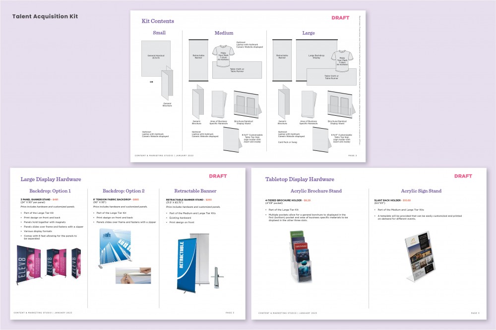 Built a versatile recruiting kit designed for adaptability across event sizes using the existing Employee Experience style guide.