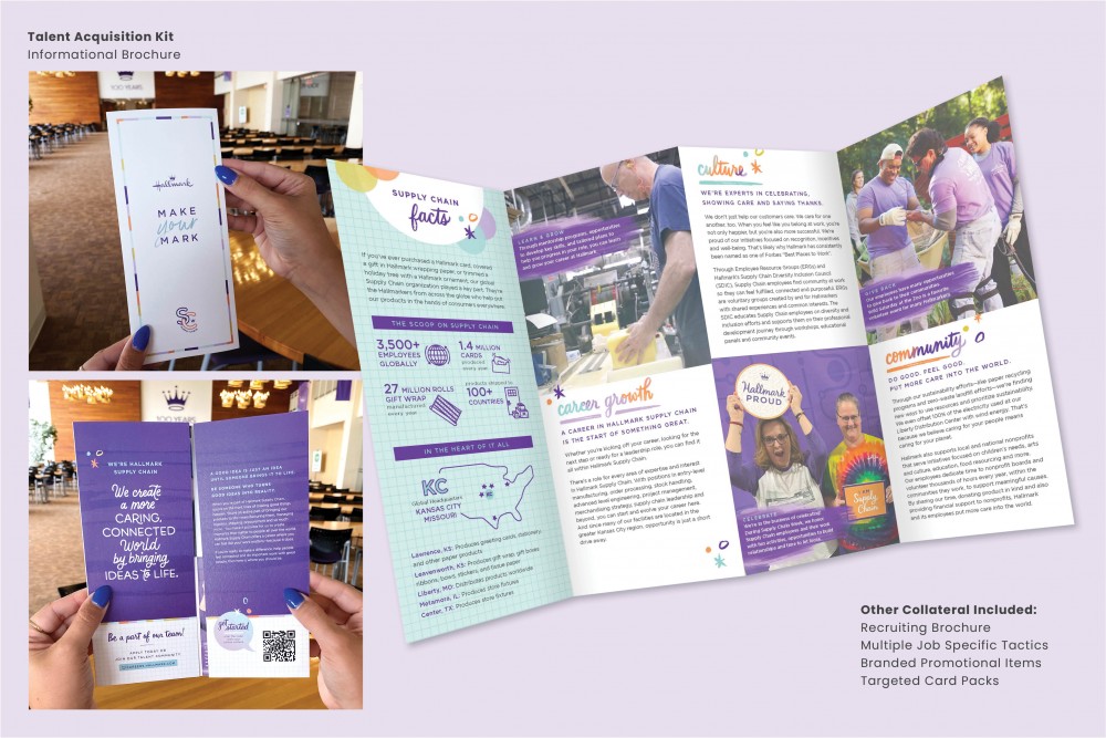 The kit was enthusiastically received, setting a new standard for Talent Acquisition recruiting efforts. Its success then expanded beyond Supply Chain into creating materials and kits for Global Recruiting used to recruit all new employees and interns.